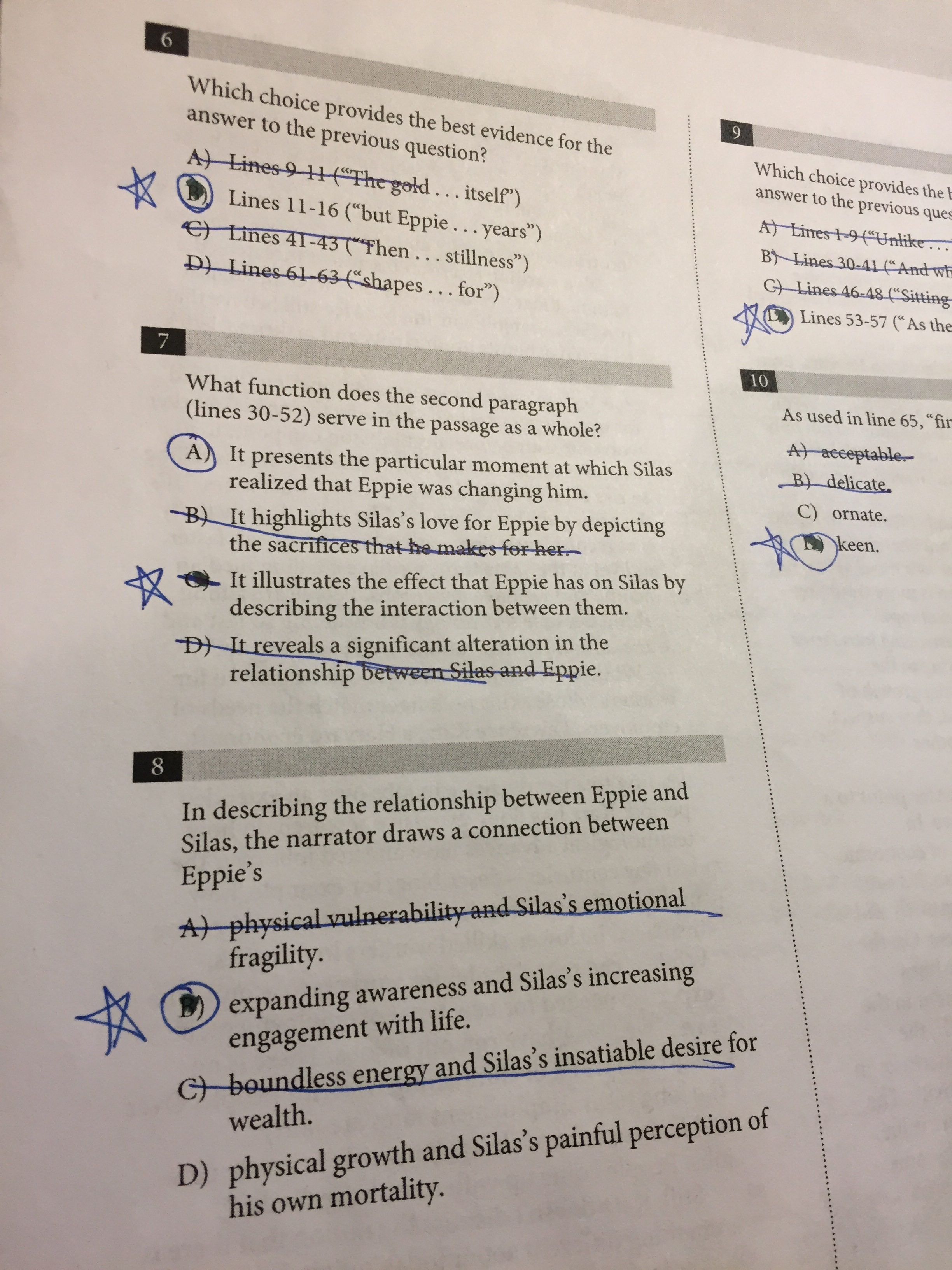 Once you've completed the entire section, use the answer sheet to star the correct answers on each page.