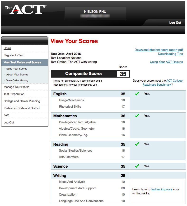 The highlight of this exam was the perfect score I got on the ACT essay. Why? Because I managed to crush it with an essay template that I developed.