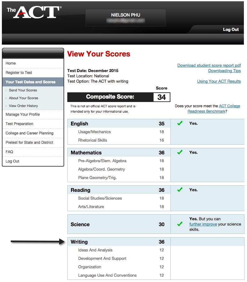 As you can see, my tweaks to the essay only hurt me, which is ok since I was able to learn even more about what the ACT graders are looking for. Again, get the ACT Essay book if you'd like to know what tweaks I made so that you can avoid the mistakes.